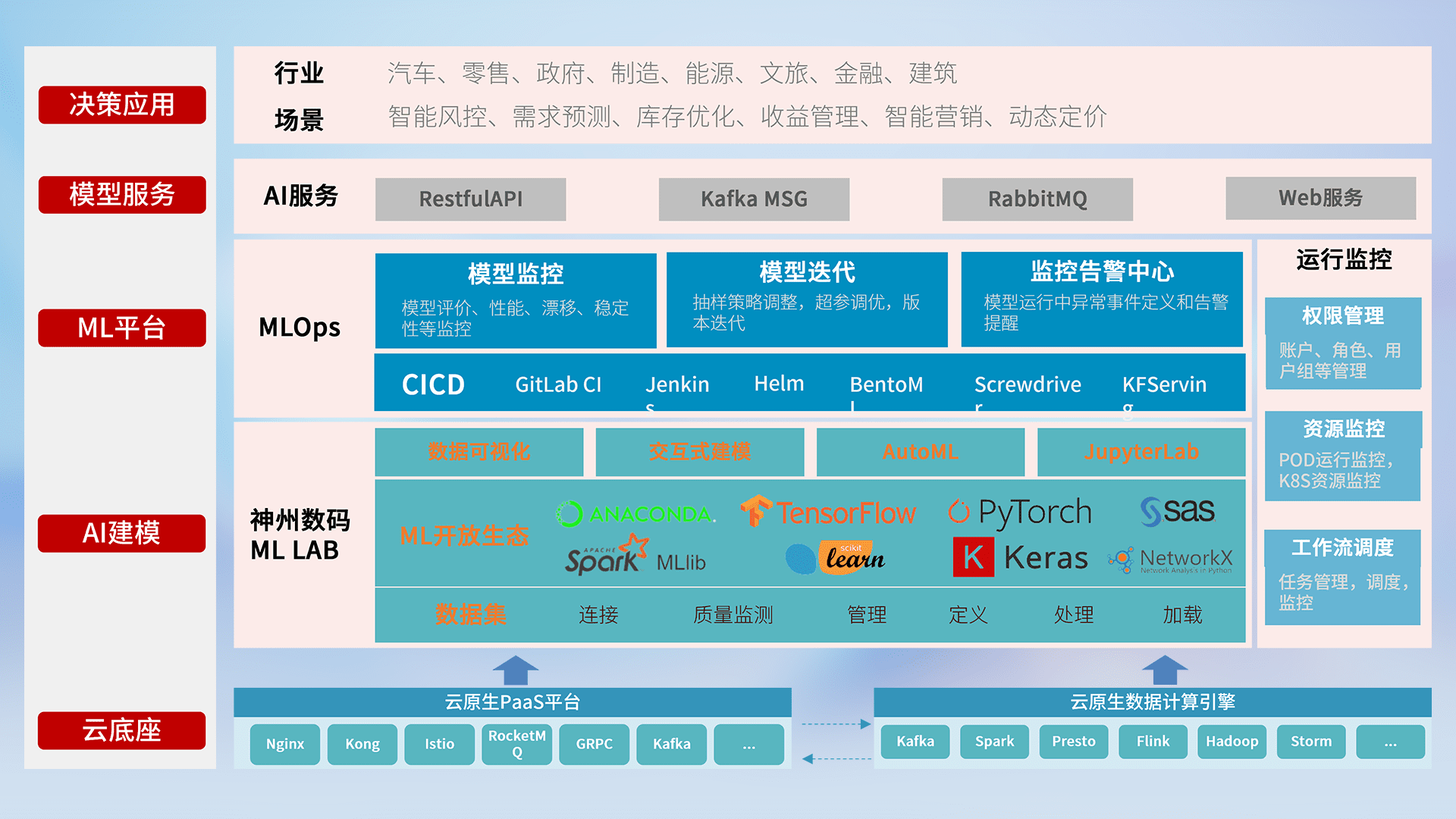 数据+模型双引擎驱动,,,面向智能服务场景,,快速灵活利用AI技术,,支持业务决策,,助力企业智能化转型破局。。